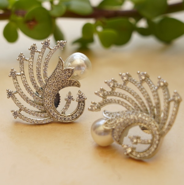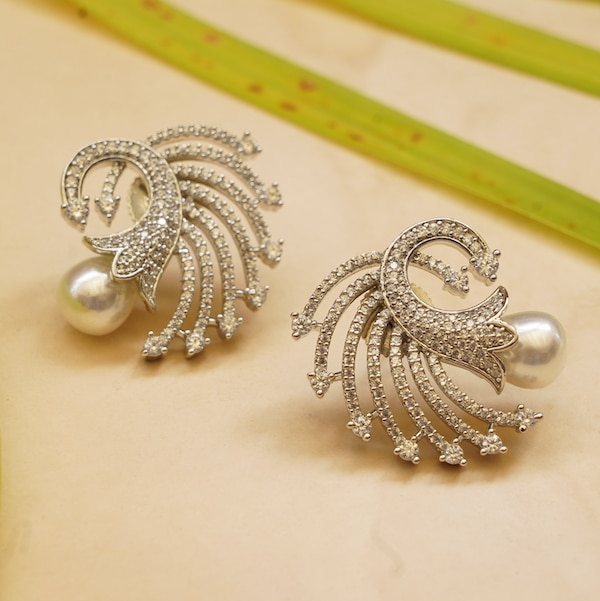The fitore stud earrings have been intricately handcrafted, this earring can be effortlessly paired with any ethnic or contemporary outfit. The combination of white gold plating, pearls and stones are sure to make your look a ten on ten.